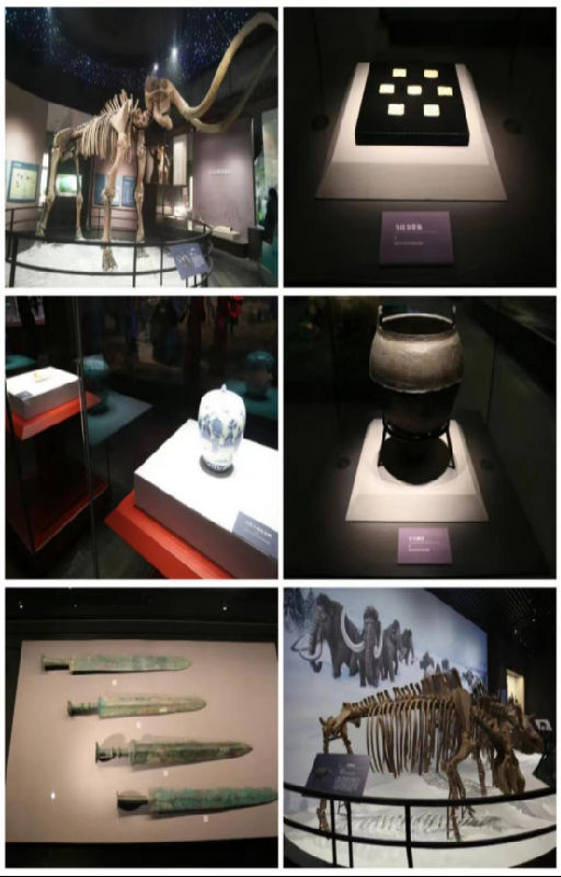 实践团的队员们首先来到史前时期展厅——“星煜北方”,一起沿时间隧道穿越至远古的呼伦贝尔。早在2-3万年前的旧石器时代就有原始人类生活在呼伦贝尔,距今10000 -7000年左右的中石器时代,呼伦贝尔各地都留下了原始人的遗迹。呼伦贝尔的原始居民以小扎赉诺尔人为代表,能熟练地运用打制和压制技术制作各种用途和形状的石器。并已经开始应用细石器与骨器结合的镶嵌技术,制成带骨柄的骨与石复合而成的刀,以其切削剥剐兽肉和皮张,扎赉诺尔人以渔猎、采集为主要生产方式。另外,在远古呼伦贝尔大地上,还同时存在着大型的动物群体,它们是猛犸象与披毛犀动物群,在展厅中展出的在海拉尔河流域、伊敏河流域、大兴安岭东嫩江流域等发现的猛犸象、披毛犀的化石讲述着那段历史。精雕细琢的石器、玲珑剔透的玉器、美观实用的陶器以及绘制在大兴安岭森林岩石上拙朴的岩画,记录了呼伦贝尔远古人类的生活印记,展现了呼伦贝尔久远悠长的历史,和灿烂的文化。展厅内通过现代数字影像技术,播放着从冰河时期逐渐发展的呼伦贝尔,体现着这是一座集绿色、数字、惠民等特色于一体的现代化博物馆。