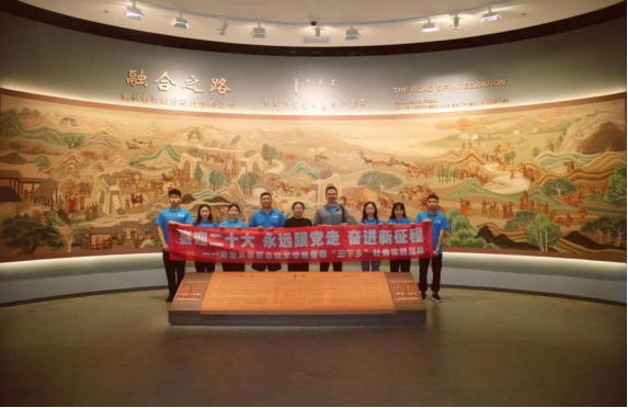 在喜迎党的二十大召开之际,为深刻了解历史,弘扬优秀的历史文化,热爱祖国、热爱家乡,铸牢中民族共同体意识,汲取奋进力量,听奏鸣在历史长河中热血奔涌的时代曲,进一步增强新时代青年学生的思想政治素质和文化修养,不忘“以青春之我,创建青春之国家,青春之民族”的伟大使命,践行“热爱内蒙古 建设内蒙古,我为北疆添光彩”的响亮口号。7月15日,经济管理系直属党支部书记、主任周杰华率三下乡主力团队—“足迹”实践团全体成员前往呼伦贝尔历史博物馆,对民族文化和历史故事进行深入地学习了解,同上一堂生动的“历史教育课”。
