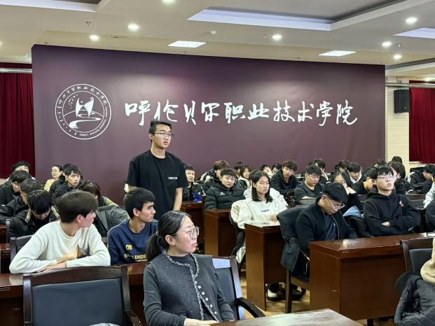 互动答疑环节,同学们聚焦征兵年龄限制、身体条件标准、入伍报名流程、优抚优待政策等核心关切,踊跃提问、深入交流,现场研讨氛围热烈浓厚。多名有志参军报国的同学,主动咨询政策细则与报名注意事项,为投身国防事业做好充分准备。答疑环节尾声,海拉尔区人民武装部为在场学子送上军事主题纪念品,以暖心举措进一步激发了我院学子建功军营的青年壮志。